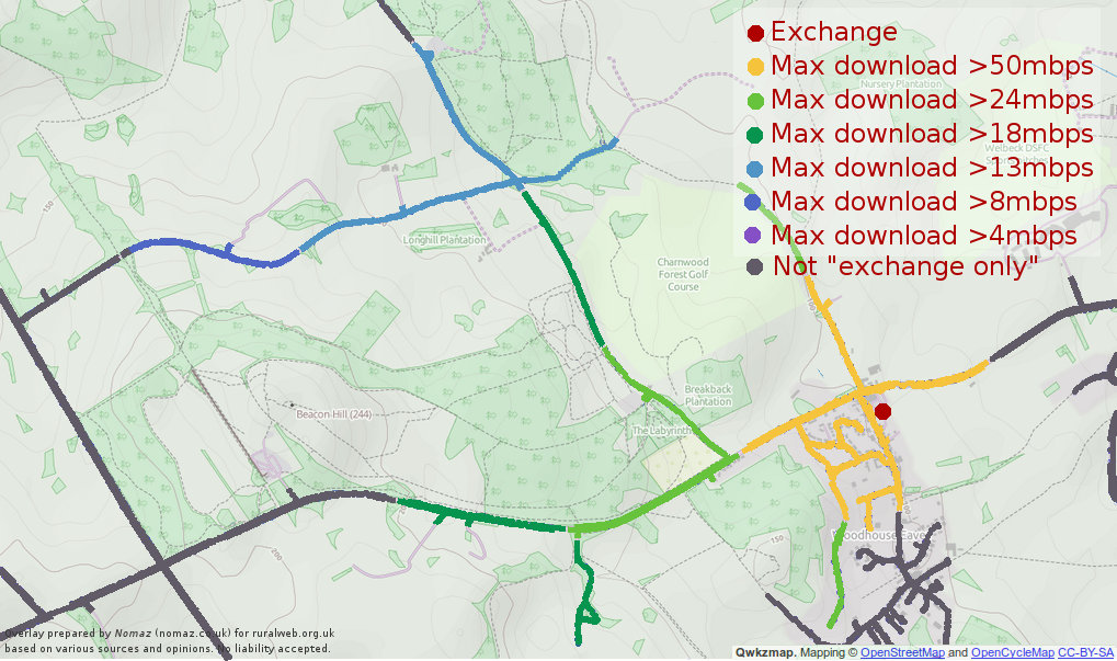 See also the pages showing what we expect by way of FTTC coverage from the existing street cabinets - see Cabinet 1 coverage, Cabinet 2 coverage and Cabinet 3 coverage.